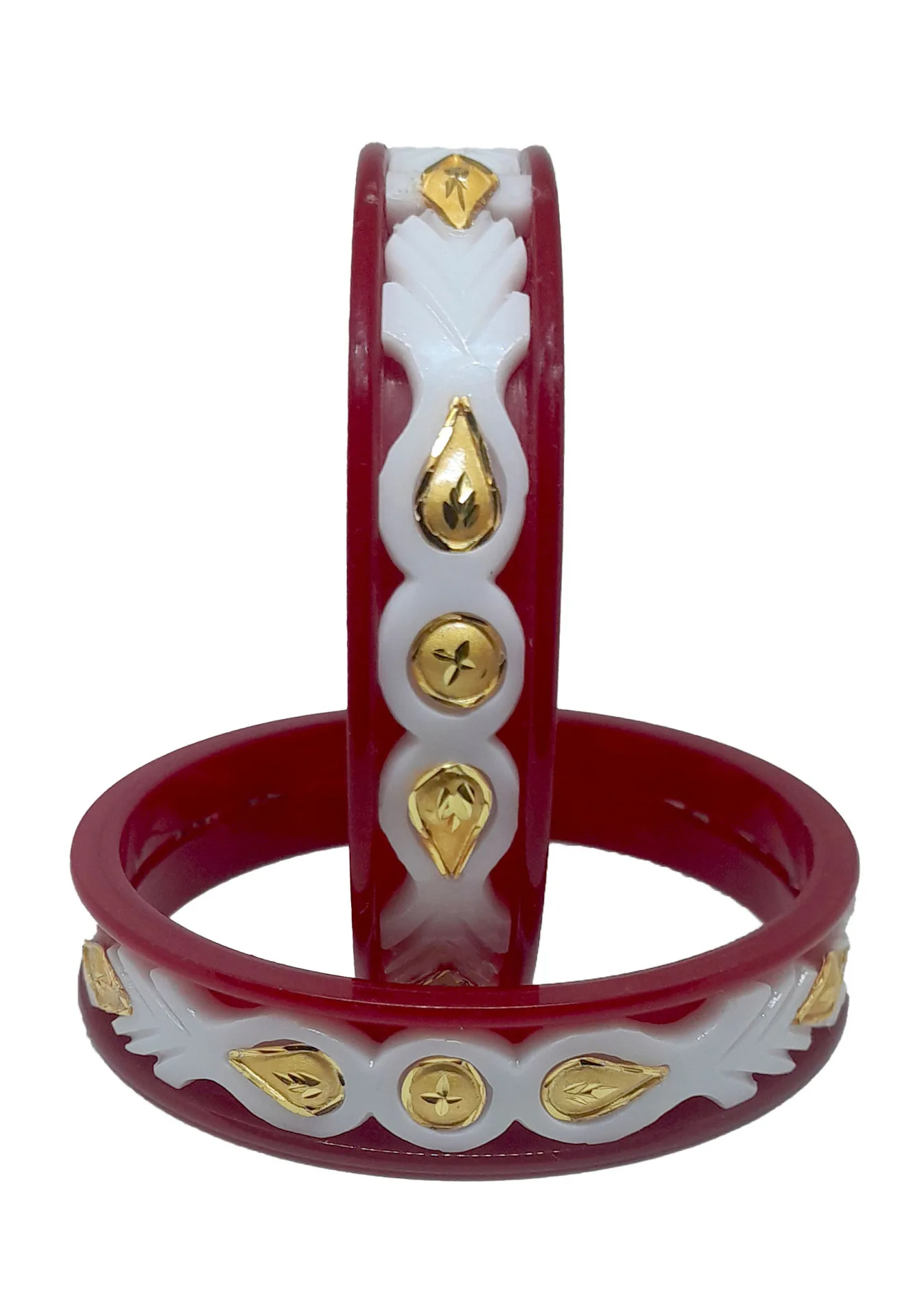 Perfect for weddings, bridal wear, festivals, and special occasions, this bangle set combines durability with elegance. The striking red and white combination with intricate golden detailing makes it an ideal choice for women who love traditional yet trendy jewellery.